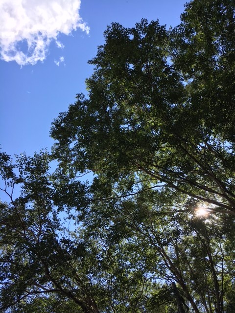 レジャーシートの上に寝転がり、空を見上げたら木漏れ日が・・・・・