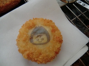 お知らせ - 2014年12月11日 戸隠スキー場様「とがっきーコロッケ」 長野県の戸隠スキー場様よりご依頼いただいた「とがっきー」をプリントしたコロッケを製造しました。 とがっきーは戸隠流忍法を修行中の男の子です。 先週降った雪のおかげで今週末のプレオープンから快適に滑れそうです。 とがっきーコロッケは同スキー場のお子様メニューでお楽しみいただけます。
